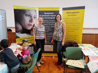 Mit einem Maltisch, an dem Kinder nach Herzenslust mit Fingerfarben wirken konnten und einem Duft-Memory-Spiel, bei dem neugierige große und kleine Besucher Duft-Paare erschnuppern konnten, gelang es unkompliziert, mit interessierten Müttern und Vätern zum Thema Krisen rund um Schwangerschaft und Geburt ins Gespräch zu kommen.